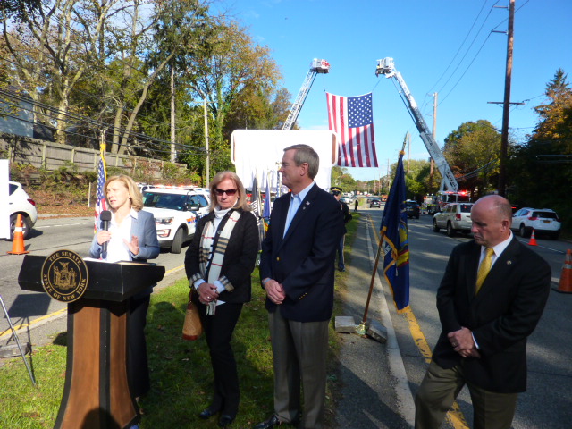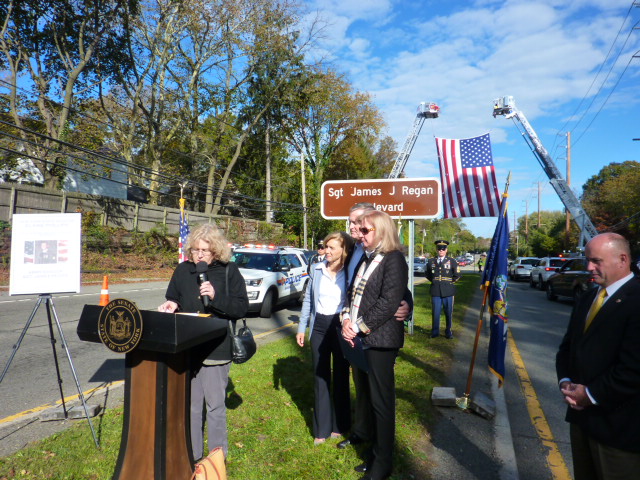 p1110107 b7a258Senator Elaine Phillips today joined family and friends of Sergeant James. R. Regan, elected officials, local veterans, and emergency services personnel at a dedication ceremony renaming a portion of Port Washington Boulevard in honor of the Manhasset native who was killed in Iraq in 2007.p1110106