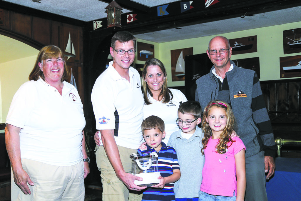 Back to the MBYC Fall Series, the last day of racing on Saturday, Oct. 21, was reserved for a distance race. The forecast was again dismal, three to four knots out of the east. Racing began around 11 a.m. when the wind picked up and held. About halfway down the course, the wind pretty much died, but then came alive to bring the boats home to port. The after party and awards began in the late afternoon. The food was great, the drinks flowed and, most importantly, the sailors were happy. Commodore John Silbersack and PRO Miller handed out the awards.