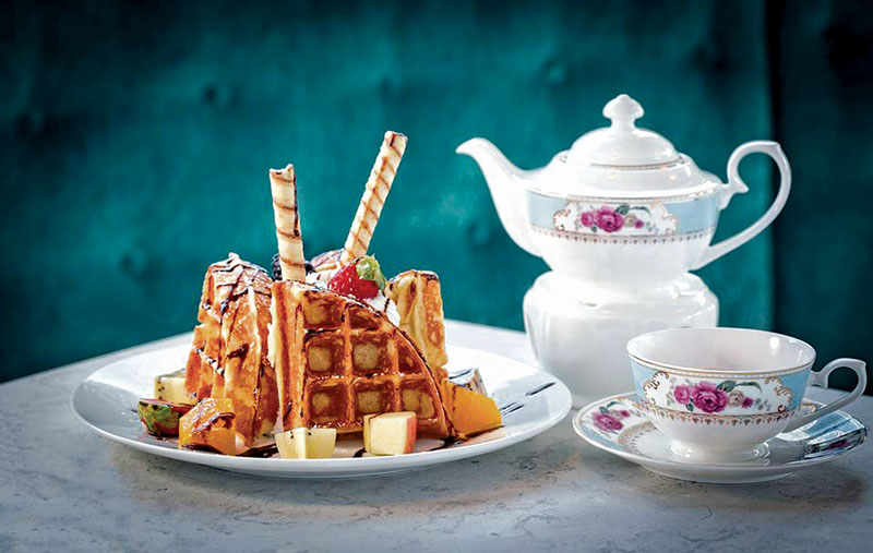 Their teas and coffee are paired perfectly with desserts, like rose cake and waffle with ice cream. For the ultimate English tea experience, check out their deluxe tea sets, in which treats are displayed on a traditional three-tier tea set.