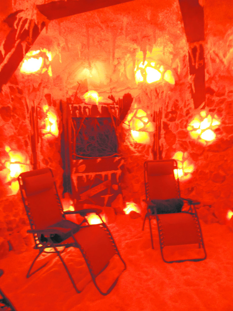 The Port Salt Cave is made up of 10 tons of salt, with four inches of salt on the floor and entire walls made of salt, mined from Poland. The salt cave is kept at a temperature of 67 degrees and holds two water cascades that have iodine, which helps the thyroid gland.