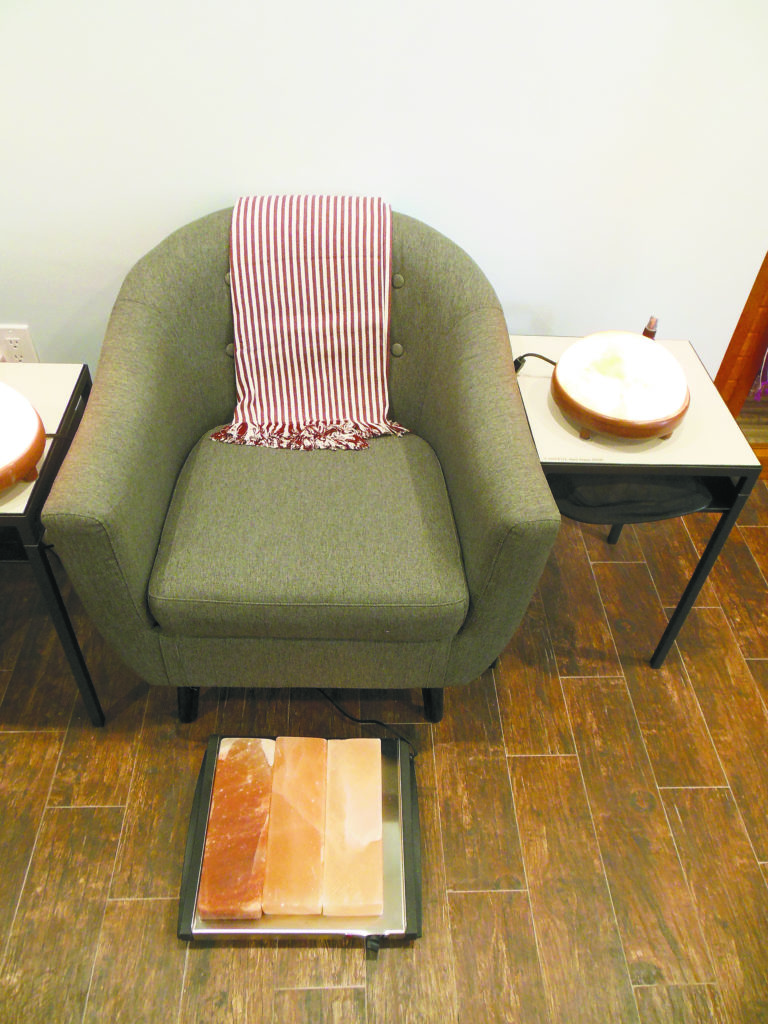 “There’s a halo generator outside the tube and it takes pharmaceutical grade salt and it atomizes it to the finest particle size which is 2.0 particle size,” said Sullivan, explaining how the cave works. “That’s the size that fits into your small airway. That’s where breathing issues occur. The salt is naturally an anti-inflammatory because it opens up the airways, so you’re breathing it in. You want to deep breathe it in and it opens up your airways.”