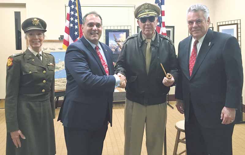 Oyster Bay Town Supervisor Joseph Saladino recently joined with Congressman Peter King at the annual Museum of American Armor Gala held at the Museum of American Armor, honoring our veterans and those on active military duty. Saladino is pictured with “General Douglas MacArthur” and his aide during the ceremonies. The Museum of American armor, located inside the Old Bethpage Village Restoration, creates a military armored column that replicates the sights and sounds of American forces during World War II. The museum offers one of the most compelling educational tools our region has in telling the seminal story of American courage, valor and sacrifice.