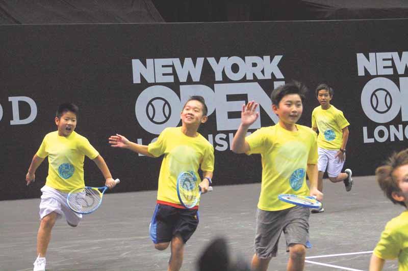 The 10 and Under Tennis Program at Christopher Morley Tennis focuses on developing athletes from a young age by providing them with the right equipment, lessons on the rules of the game and custom court sizes for children at different levels of development. That youthful approach to tennis was on full display last week at the NY Open at NYCB Live, home of the Nassau Veterans Memorial Coliseum, when before the first match of the evening, the youngest tennis players with the Christopher Morley program demonstrated the beneficial nature of youth tennis with shorter courts, balls that bounce lower and slower and equipment that is sized perfectly for kids.