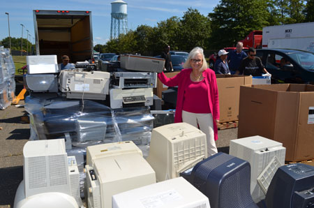 Supervisor Judi Bosworth with e-waste at a past S.T.O.P event