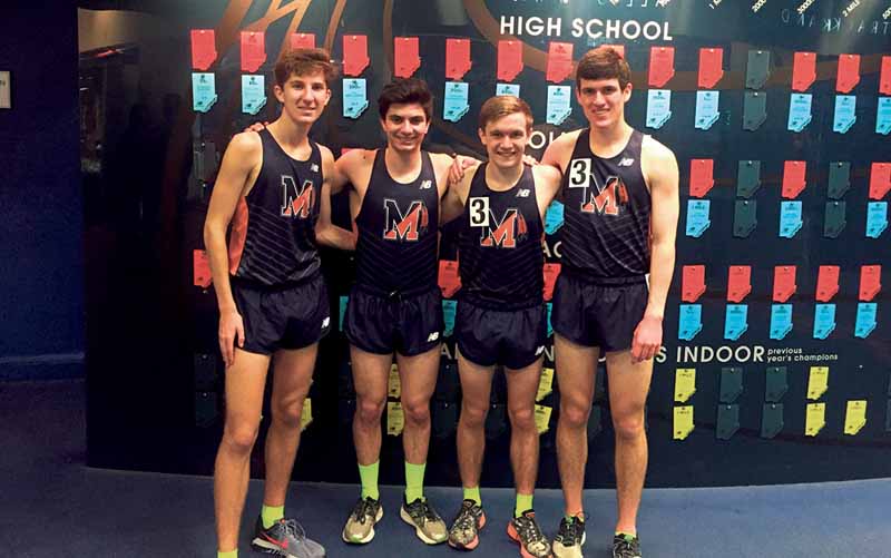 Manhasset’s 4x800m Relay of Chris Courts, Aidan Caggiano, Jack Cyprus and Ryan Watson recently shattered the school record when they ran 8:00.14 to qualify for the New Balance Indoor National Track & Field Championships. The quartet also qualified for Nationals in the 4xMile relay earlier in the season, running a cumulative time of 17:45.