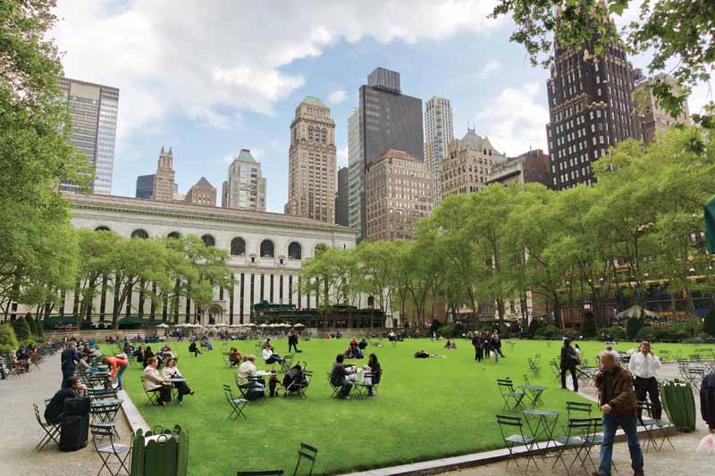 Bryant Park is located between Fifth and Sixth Avenues and between 40th and 42nd Streets in Midtown Manhattan