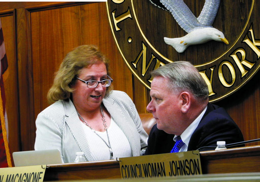 After a lengthy and at times heated debate, Macagnone declared that he was fine with the human resources commissioner—or a designated deputy—making the decision. Saladino said he wasn’t opposed to that, and Chief Deputy Town Attorney Frank Scalera, who had explained the resolutions, said the wording of the proposed laws would be changed accordingly.