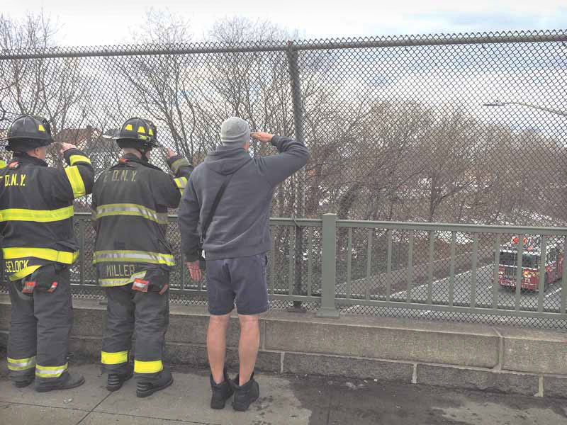 FDNY brought Davidson’s body home to Floral Park on Friday, March 23. Members from dozens of emergency response teams from across Long Island and the five boroughs assembled from Harlem to Floral Park, saluting Davidson’s final call. Hundreds of residents and firemen lined Jericho Turnpike, from the Cross Island Expressway, to Thomas F. Dalton Funeral Home in Floral Park, to pay their respects.
