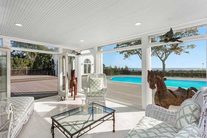 This spectacular waterfront home with panoramic views of the Great South situated on a 1.8-acre lot is listed for sale at Bay 9 Point Rd. in the Village of Bellport.