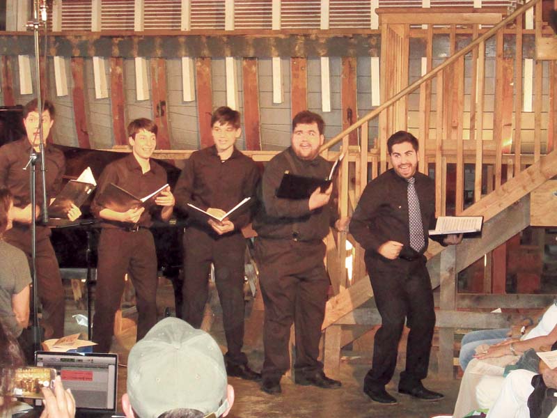Christeen captain Pete McAndrew illuminated the performers with equipment from his jazz appearances. The busy working volunteers, George Lindsay, Bruce Levinson and Jack Hoyt (who also hauled benches to and from the center with Deming), re-configured the work areas around the Ida May to make it accessible and safe for the crowd of about 100 listeners.