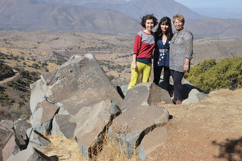 The Chilean exhibition “From the Image to the Threads” soon to come to the Port Washington Public Library is an artisan project years in the making that explores the history of petroglyphs (rock art) in the archaic era of Putaendo, Chile. Chilean artists Viviana Trigo of Viña del Mar, Enedita Roman of Pumanque, and Vicky Martinez of Santiago, make up Grupo Trinacria, or the Trinacria Group, that formed in Casa Taller Recreo, Viña del Mar, Chile in 2017.