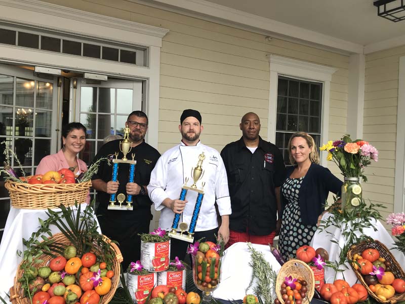 From left: Alana Petrocelli, executive director, Nassau County Firefighters Museum; David Vasile, Syosset Fire Department; Anthony Colombo, Atria at Roslyn chef; an unidentified member of Roslyn Highlands and Allison Miller, executive director, Atria of Roslyn. The Syosset FD won the fire company contest, while Colombo was voted the People’s Voice chef.