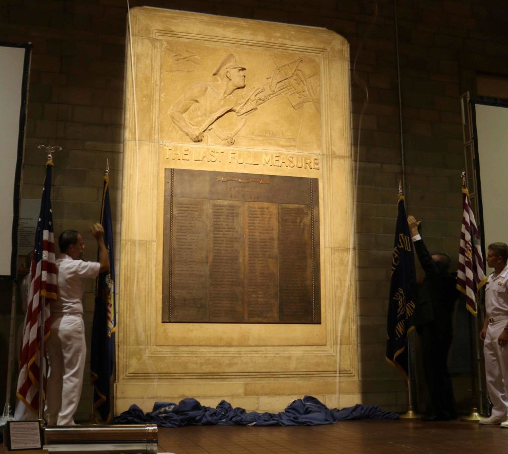 This project involved restoring a half statue, stone relief that hasn’t been seen in Delano Hall for 73 years. It depicts a cadet-midshipman, as they were known in World War II, firing an anti-aircraft gun at German aircraft.