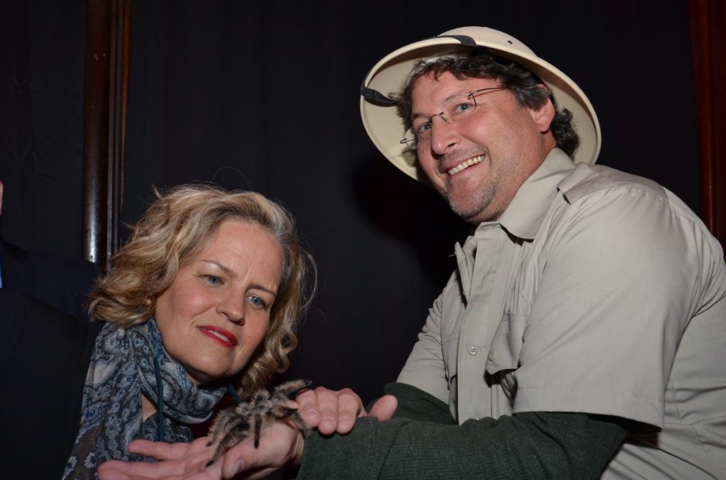 “terrifying” live creatures courtesy of conservancy regular Ranger Eric Powers and the Locust Valley-based Volunteers for Wildlife. During the VIP hour, conservancy managing director Beth Horn welcomed the guests, including Nassau County Executive Laura Curran and Assemblyman Anthony D’Urso before introducing the evening’s “extraordinarily creative and talented” honorees, Port Washington residents Amanda Khalil and Flora and Adam Hanft, who were being recognized not only for all of the work that they do on behalf of the larger community but for their “commitment, support, and the many innovative ideas that they so generously bring to the Sands Point Preserve.”