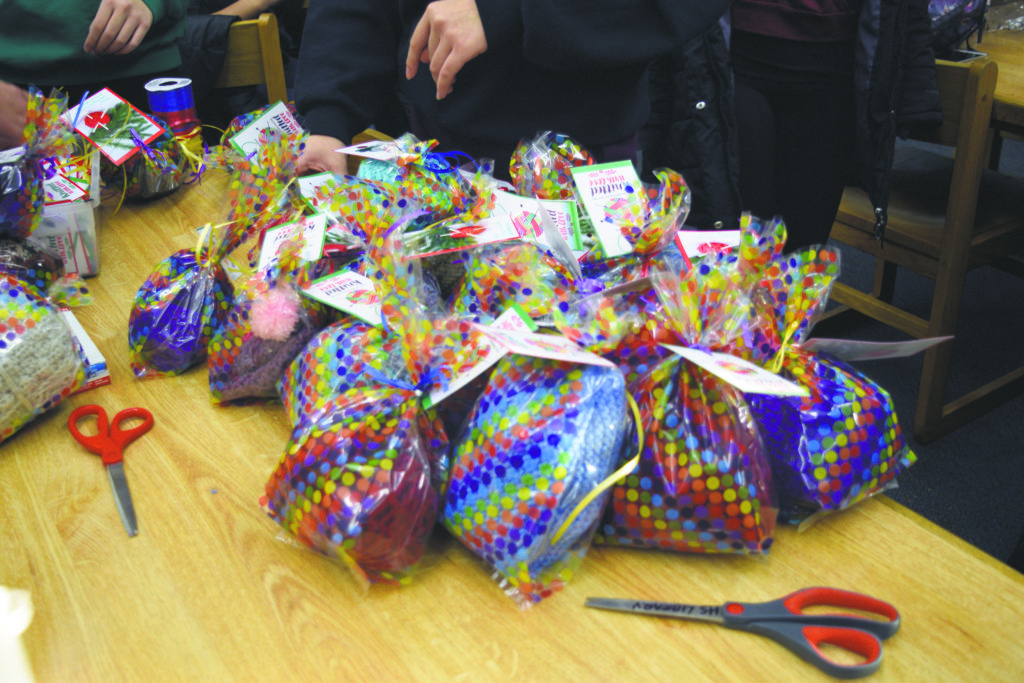 Stitching for Care has two main projects. The first is to knit or crochet hats and scarves for children in homeless shelters. The Art Honor Society members wrap the scarves with beautiful bags, ribbons and tags. Art Honor Society advisor Louise Millmann delivers the scarves to shelters during the holiday season.