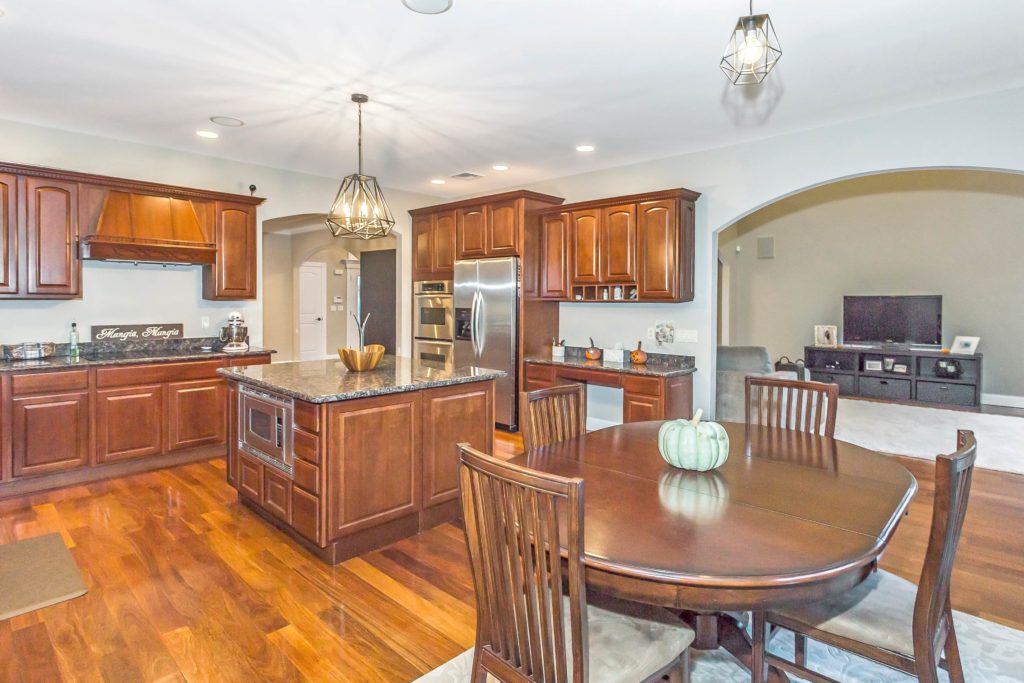 Being on-the-go millennials, the homeowners wanted a smart security system. They also installed Nest thermostats that control three zones of heat and provide energy savings along with the luxury of coming home to a warm house. There’s central cooling and, of course, surround sound.