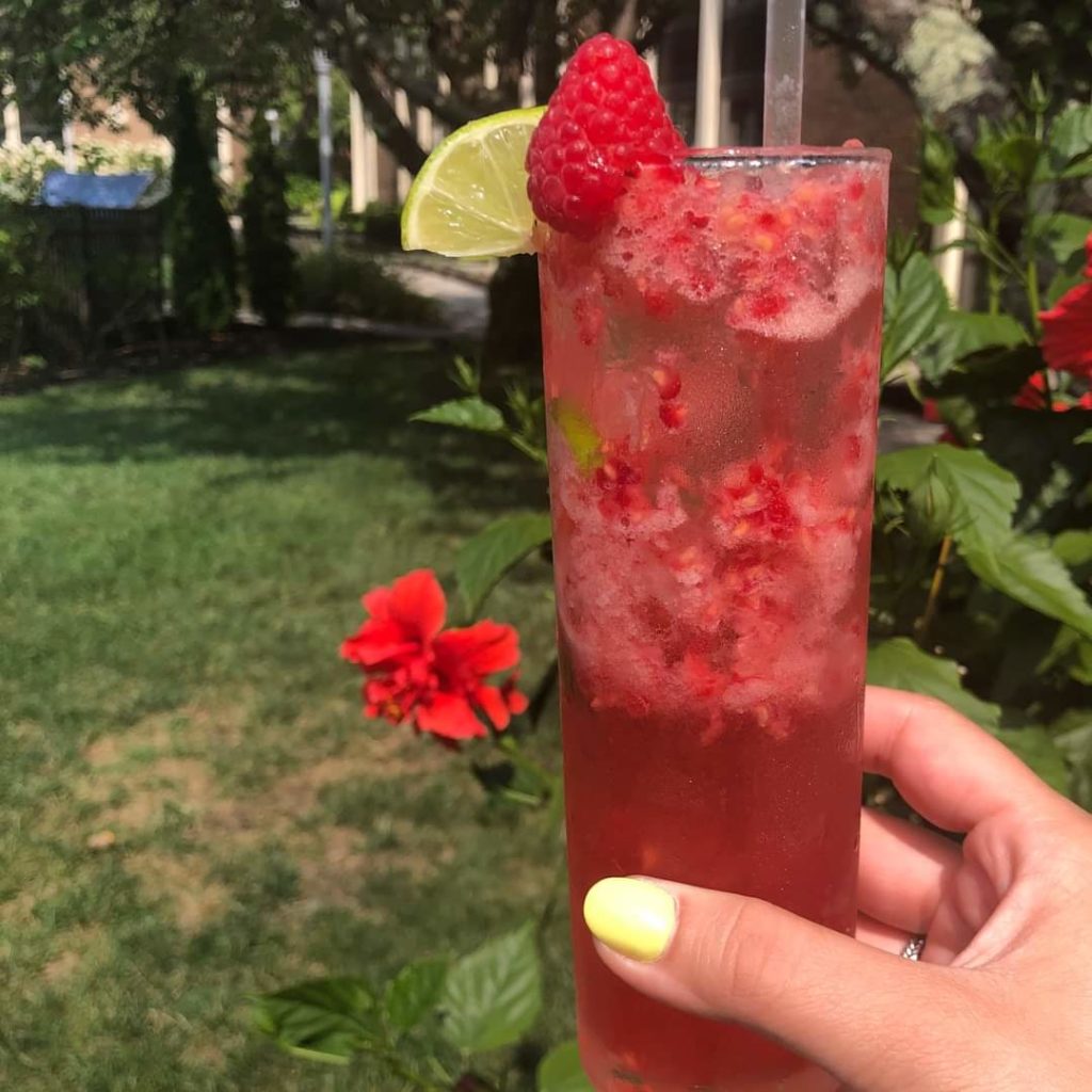 Mead Me at Bistro is made with Beacon Meadery Raspberry Mead, Deepwells Botanical Dry Gin (produced by Long Island Spirits, a microdistillery in Baiting Hollow), fresh raspberries, lime, and club soda.