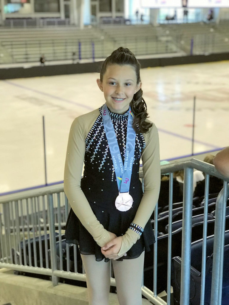 Martina earned a bronze medal for New York State in the Excel Preliminary Plus free skate competition at the State Games of America. This is an Olympic-style event gathering athletes from statewide sports festivals (New York’s is known as the Empire State Games) from 30 states. The games, held at Liberty University in Lynchburg, VA, drew more than 14,000 athletes earlier this summer.
