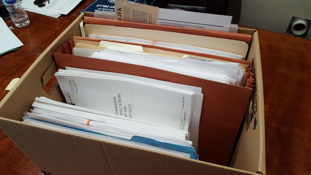 The earliest complaint about excessive plane noise on record with the Village of East Hills dates back to September 1996. In total, the Village of East Hills has received 1,695 petitions from residents complaining about excessive airplane noise and its detrimental effects.