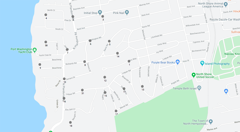 The 16 cell node locations that are part of the application to the town are all north of the Village of Plandome Manor, in the unincorporated areas of Port Washington. The proposed nodes are currently on Beachway, Joel Place, corner of Terrace Drive and North Plandome Road, the cul-de-sac of Capi Lane, corner of Huntington Road and Richards Road, North Court, corner of Murray Avenue and North Plandome Road, corner of Murray Avenue and Carlton Avenue, Huntington Road, Davis Road, Richards Road, Ivy Way, the end of Leeds Drive, Oakland Drive, Amherst Road and the corner of Leeds Drive and Muriel Road.