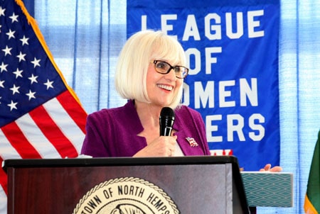 Town of North Hempstead Supervisor Judi Bosworth gave her seventh state of the town address at the Clubhouse at the Harbor Links Golf Course in Port Washington on Friday, Jan. 31. More than 280 people attended the event, which was hosted by the League of Women Voters of Port Washington-Manhasset. The event began with the Pledge of Allegiance which was led by members of the Town of North Hempstead’s Veterans Advisory Committee. Ian Miller, a student from Schreiber High School sang the “Star Spangled Banner.”