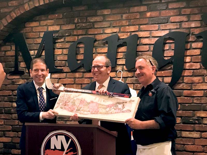 Before Ledecky departed from Borrelli’s, the Jericho Chamber of Commerce wanted to show their appreciation for him. The chamber gifted the Islanders’ owner with a custom hockey stick, as well as a gorgeous map of Long Island to hang up in his office.