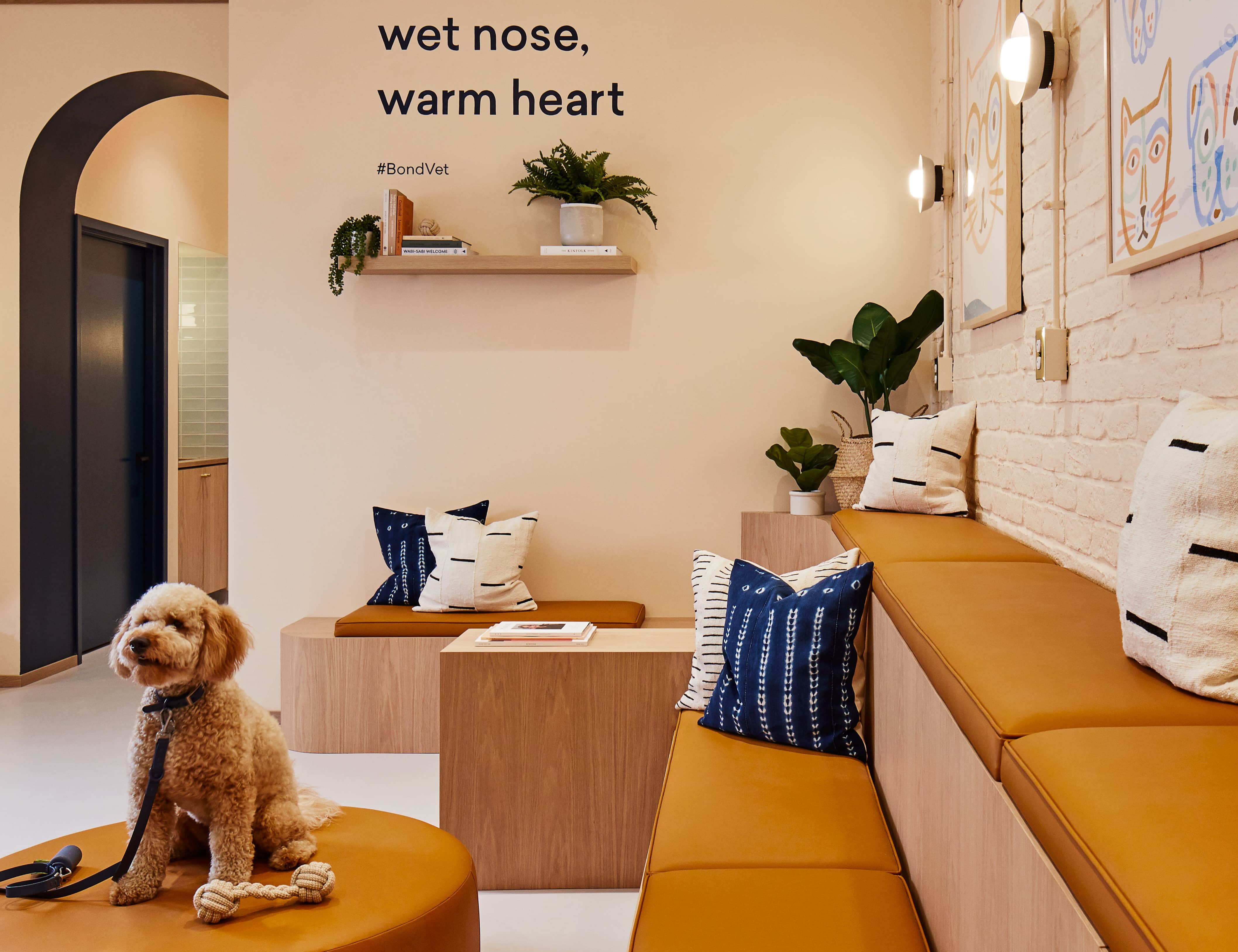 The clinic features a dedicated exam and surgery areas, as well as a retail wall that stocks design-minded pet health products and single-ingredient treats.