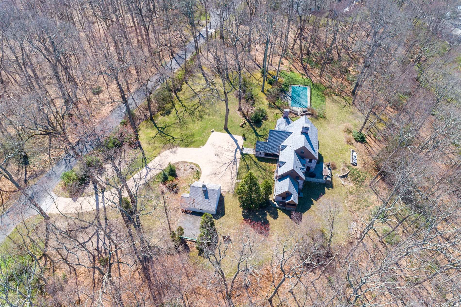 This three-acre property has this handsome home as its centerpiece, plus a long driveway and a separate two-car garage to the side. Nature lovers will rejoice at the wealth of trees spanning from one side of the home, abounding at its rear and to the other side.