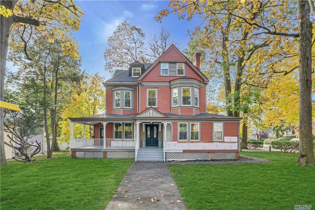 The former Victorian home of renowned 19th-century banker J.P. Morgan is listed for sale at 204 Warner Ave. in Roslyn Heights.