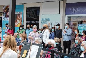 In an ongoing partnership with the mall, “Hicksville Hits Broadway” plans were begun months ago by the PTAs, under the leadership of PTA Council President Erin Guida, to provide the opportunity for the district’s fine arts students to have a concert and art exhibit experience when COVID-19 prevented the normal in-school schedule of these events that are so important to budding young musicians and artists.