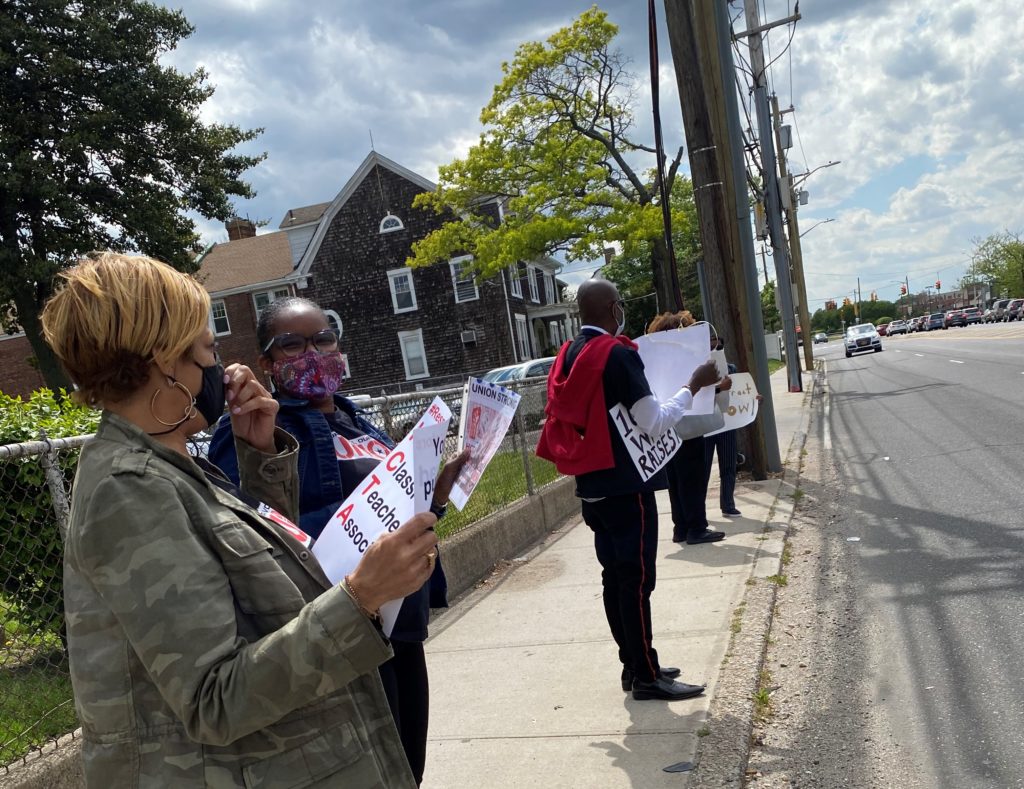 Members of the Hempstead Classroom Teachers Association have been rallying with staff, students, and retirees, to demand increased wages as they lined up outside Hempstead School District headquarters.