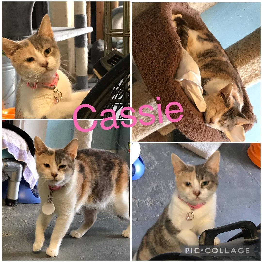Cassie is an adorable 1-year-old little girl with a super sweet personality to match! She’s a pretty calm, relaxed girl who enjoys getting attention when it’s given to her and doesn’t fight with the other cats for the spotlight.