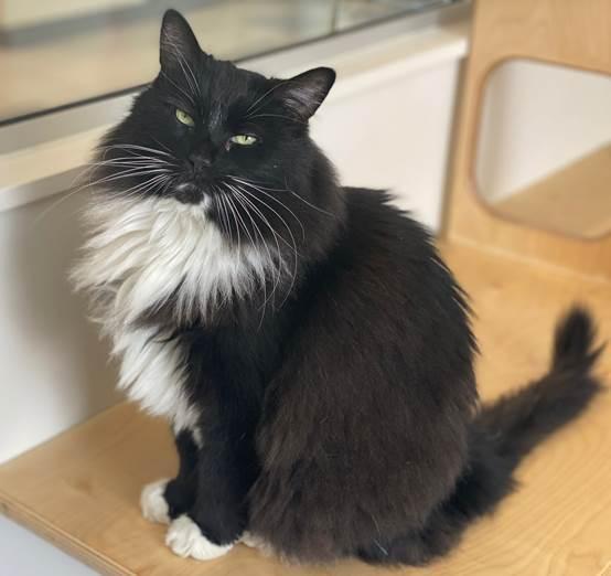 **Senior Alert** Friendly Felix (Adoption #E00550) wasn’t thrilled to lose his lifelong home recently, but with a little reassurance, this 11-year-old senior decided to look at this as an opportunity to make new friends in the hopes they lead him to a place where he can retire. This sweet, older gentleman is always dressed for the occasion in his fancy edo coat, and you may have to excuse him as he explores new surroundings before coming back for that head rub you’re offering. Doesn’t he sound dreamy?