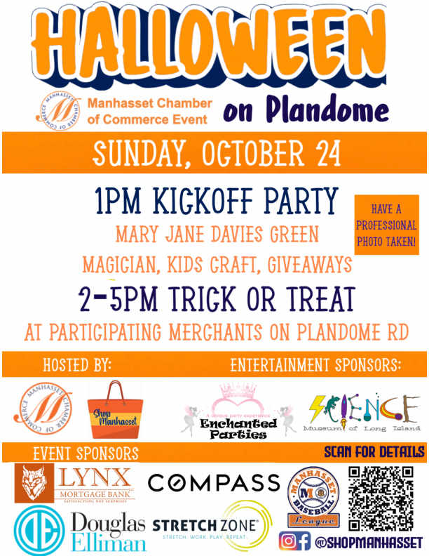 Halloween on Plandome is hosted by the Manhasset Chamber of Commerce and made possible by the assistance of Shop Manhasset and our local sponsors. The chamber’s mission is to enhance the economic vitality and quality of life of our community and to promote the general welfare and prosperity of its member businesses.