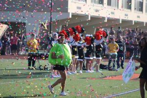 The fall varsity athletic teams were introduced and every player on each team was named. The Pep Rally started with the Varsity Cheerleaders and was followed by the Varsity Boys’ Soccer Team, Varsity Girls’ Soccer Team, Varsity Boys’ and Girls’ Cross-Country Teams,