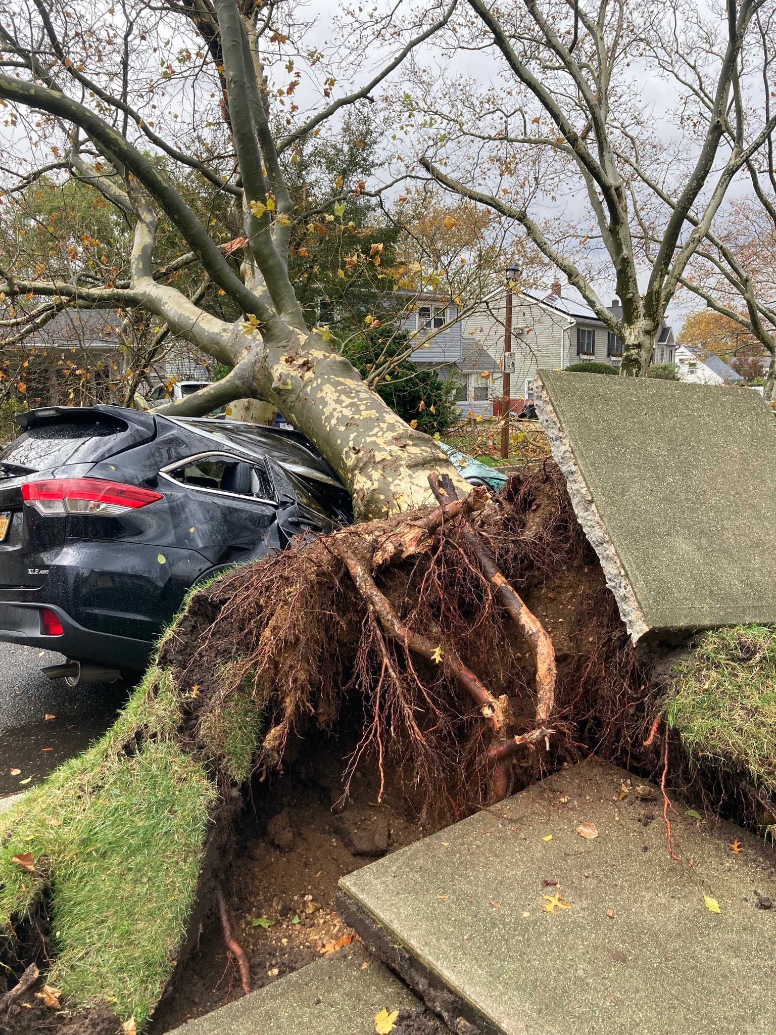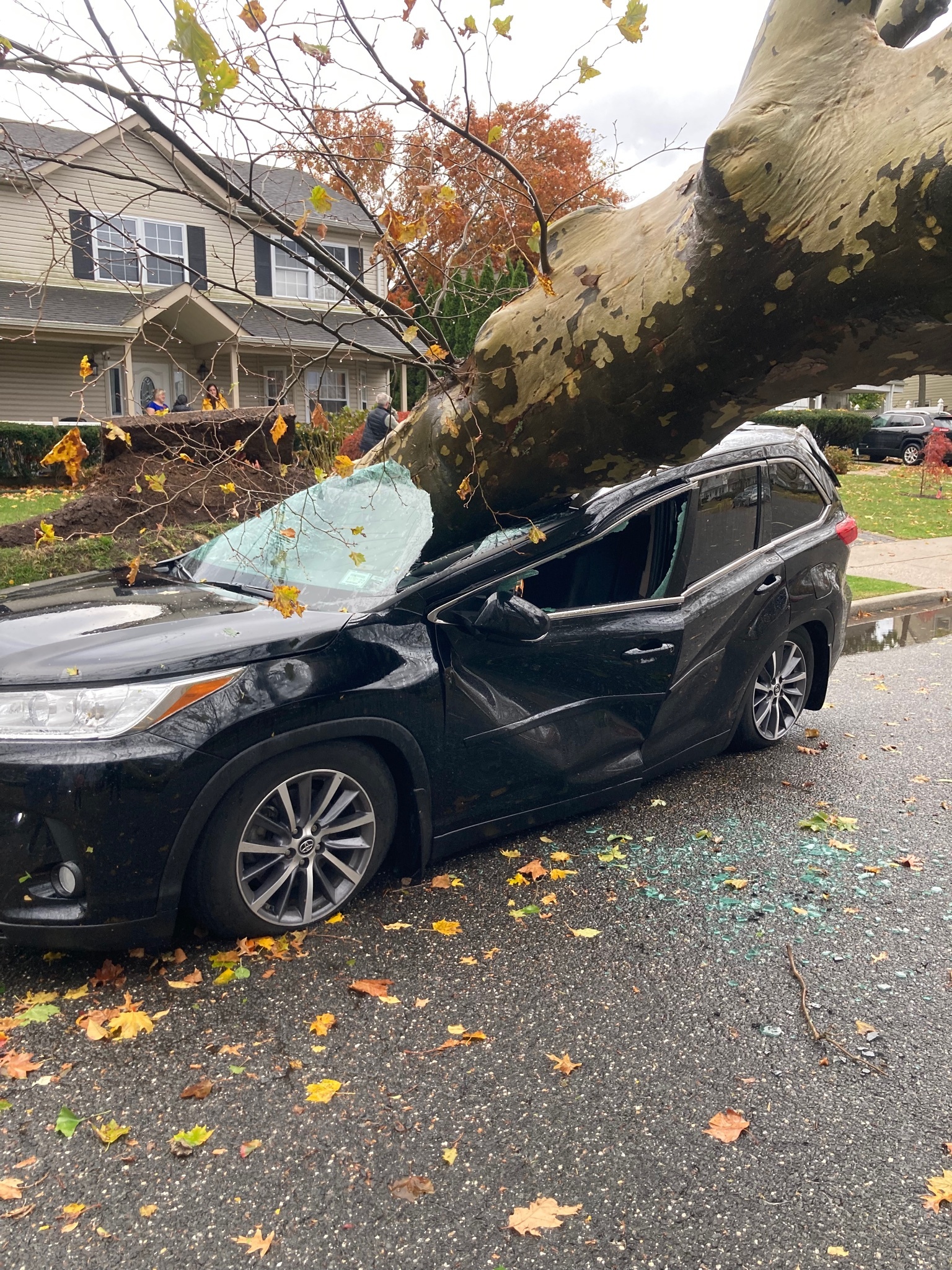 The storm left substantial damage to homes, buildings, and vehicles. This unfortunate scene was on Hilltop Road in Levittown, says Ryan Maslioja, who posted them.