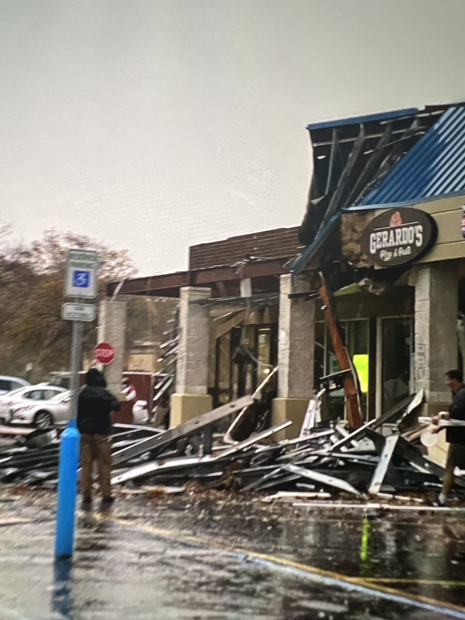 One woman, Christine Heeren of Artist Lake Media, was caught in traffic in her car during the tornado in Shirley and posted this video of the winds sweeping up leaves and debris. She also reported that a door to an Applebee’s restaurant cracked amidst the storm.
