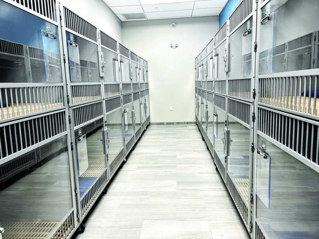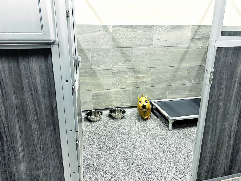 Next on the tour were the Executive rooms; each with 5’ by 7’ of cage free space, top-of-the-line enclosures, glass privacy doors and a sound resistant environment, alongside hospital grade antimicrobial floors. “These are extremely comfortable for the dogs. You can fit up to three dogs again in these. You have a hammock style bed in every single room so evenly distributes the weight for every single dog. Regardless of how much they weigh. They’ll be equally comfortable, very comfortable rooms,” Rubino added.