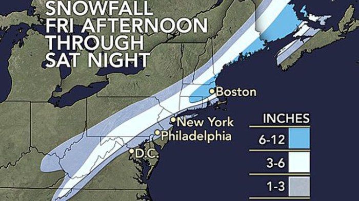 The storm is forecast to dump up to two feet or more of snow on parts of upstate New York, but less than an inch of the white stuff is expected on the Island.