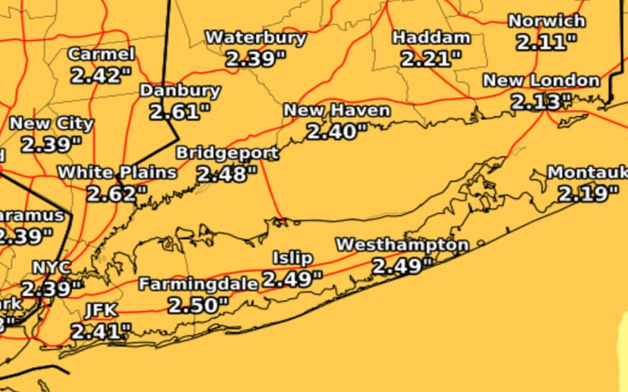 “Heavy rain during the times of high tide will likely exacerbate street flooding in coastal communities,” Upton-based NWS meteorologists said in the advisory. “Some roads and low lying property including parking lots, parks, lawns and homes/businesses with basements near the waterfront will experience shallow flooding.”