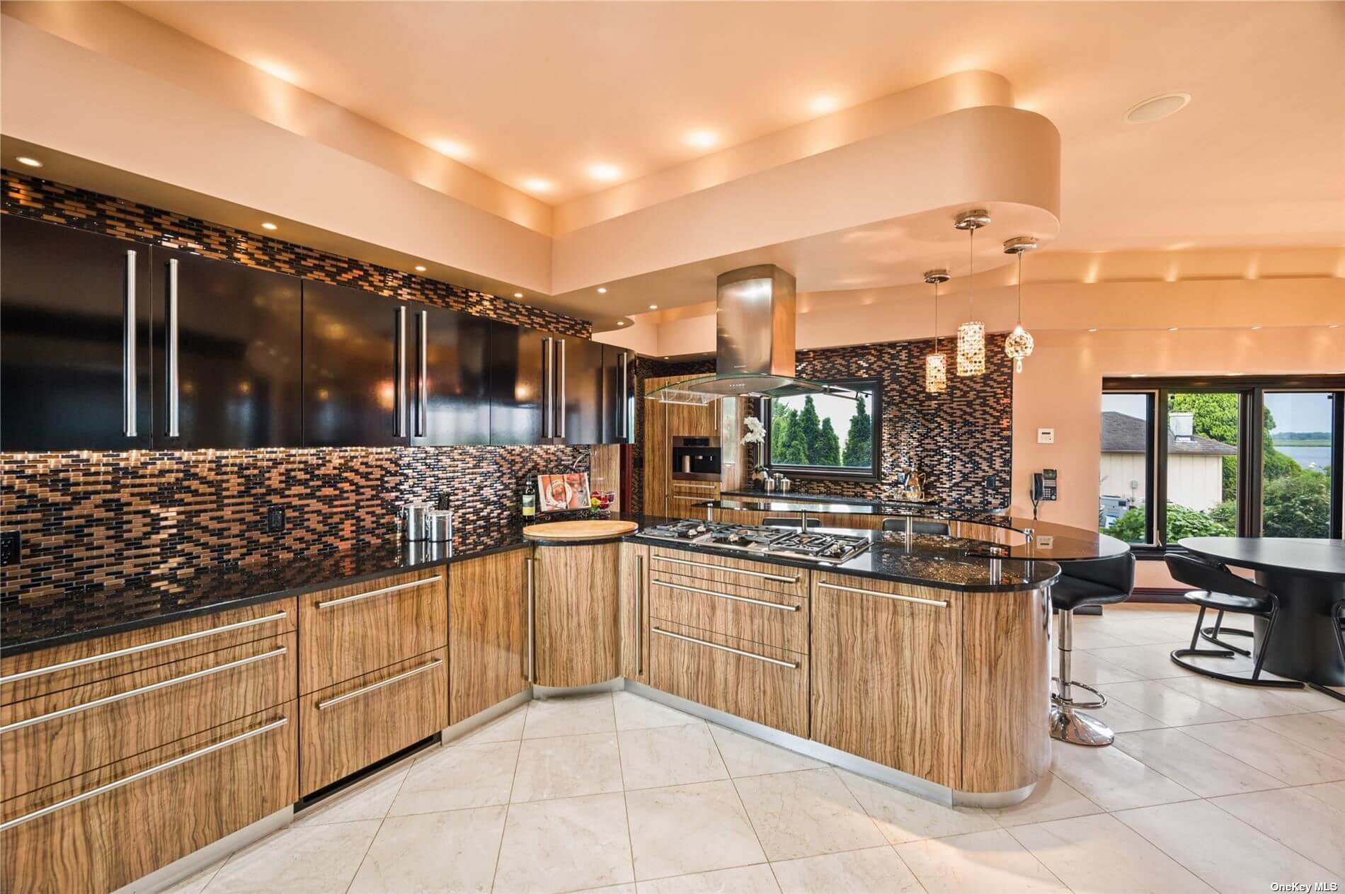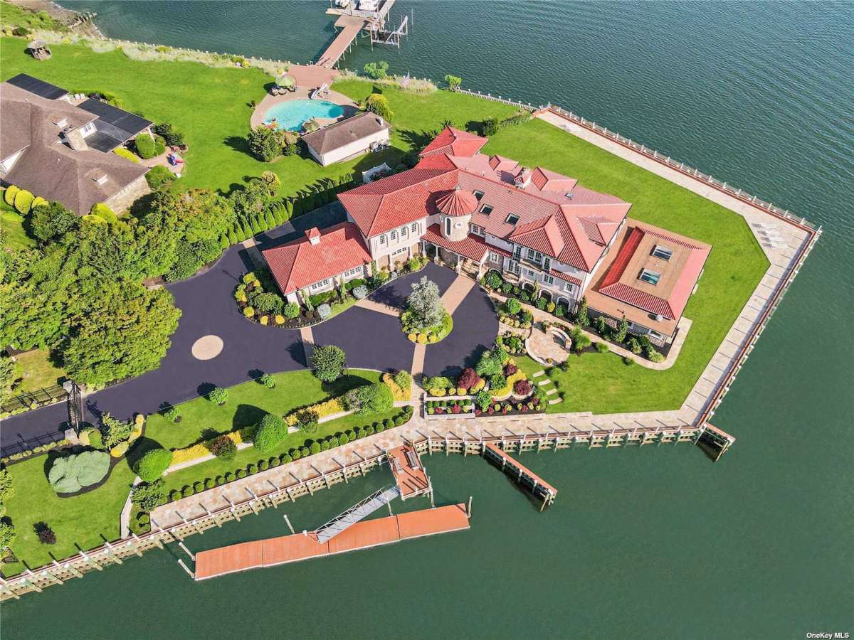 This 1.1-acre property is located at 1101 Harbor Rd. The listing describes it as its “own private paradise on Long Island,” and that’s no joke. With beautifully landscaped grounds, an indoor pool, a sauna, a private theater, a home gym, a party room, and a media entertainment room, this house has all the bells and whistles.