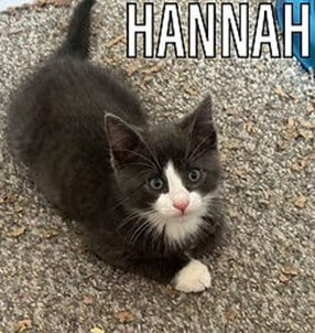 Three-month-old Hannah was rescued off the street with her brother and sister. She absolutely loves hanging out with her siblings and can be found snoozing with them. They love their toys and the various cat trees their foster family has for them.