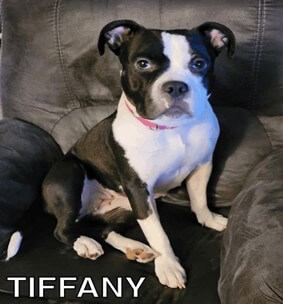 Two-year-old Tiffany is totally terrific! This sweet girl was saved from the kill shelter and has been doing amazing with her foster. She loves stuffed animals, kongs, pup cups, and raspberries. Tiffany enjoys running around the yard for sticks just as much as snuggle time and is great with other dogs.