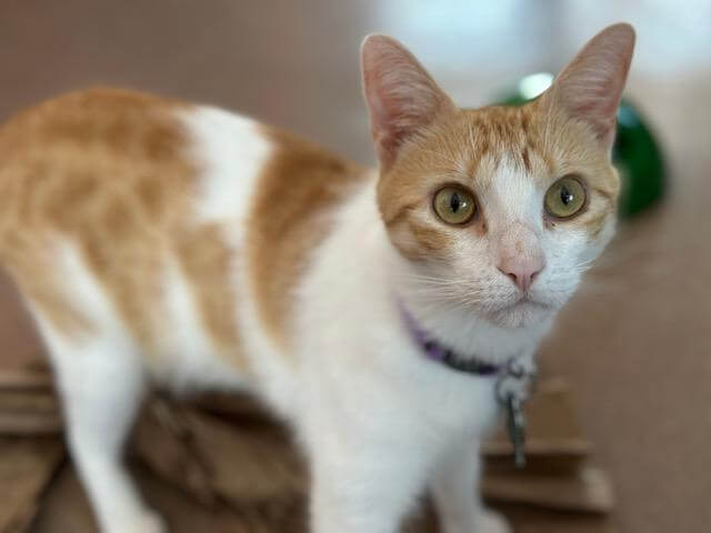 Stunning Starling is a three-year-old Domestic Shorthair who was adopted from the Animal Shelter as a kitten and was sadly returned due to allergies. Starling is as affectionate and vocal as can be, and always looking to get some attention and snuggles. Her previous owner overindulged her to the point where she has become extremely overweight. Any potential home should try and keep her on a healthy diet, as well as give her the love she needs to have a happy life. Starling would be a perfect addition to any family looking for a sweet companion.
