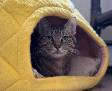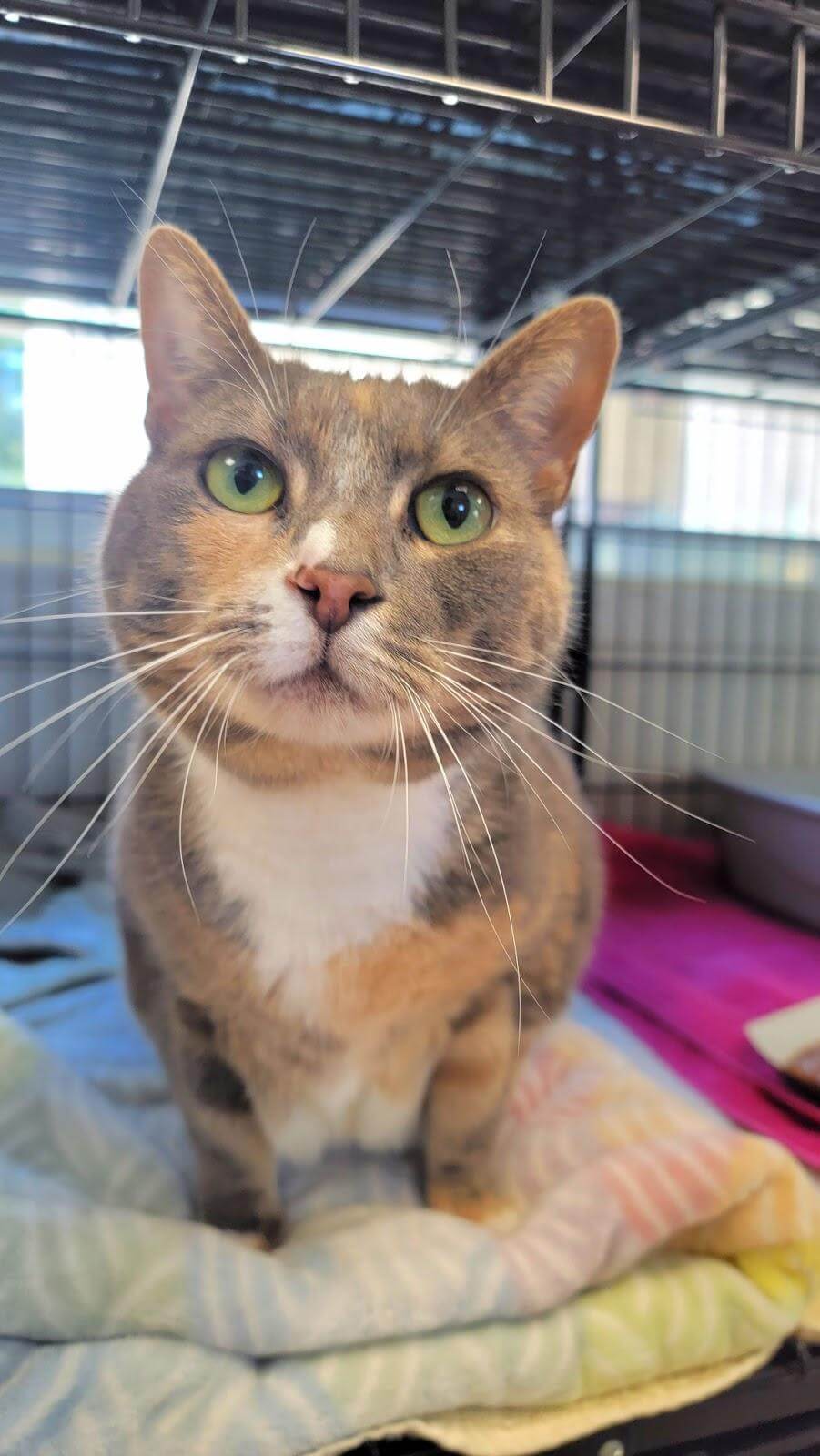 The long trip from North Carolina made one-year-old Halle Berry (Adoption #NCR6036) unsure about her new settings, but time in a cage-free room has given her the comfort she needs to feel more secure. Your quiet home (with older children) will provide Halle with the sanctuary she craves and help her settle into the next chapter of her life, one as a beloved pet. Any pets in the home should match her chill energy. Give her the time and space she needs to feel safe, and you’ll soon be counting yourself lucky as a new friendship blossom in your home!
