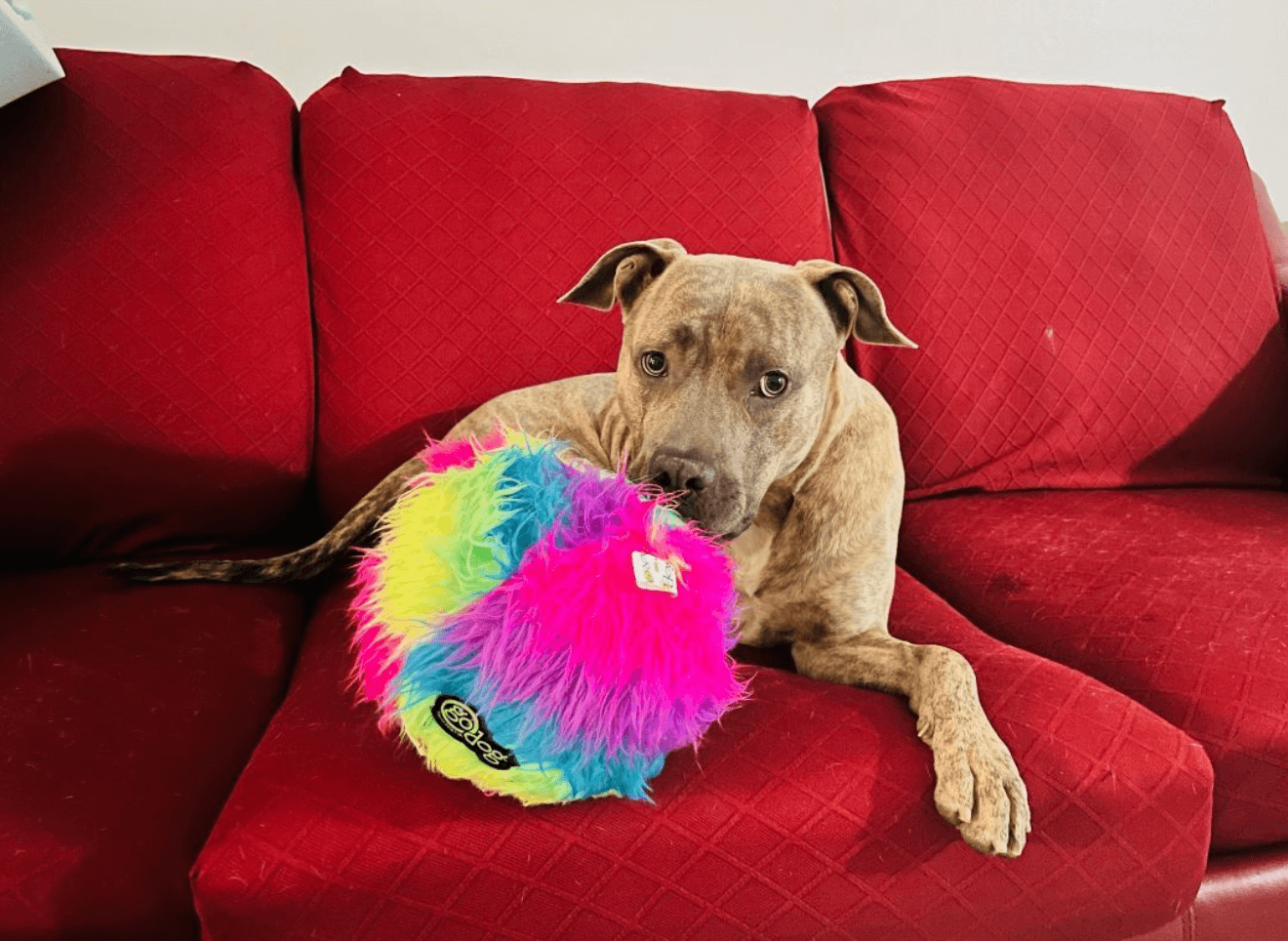 Introducing Aruba, affectionately known as Kiko! Aruba’s foster parents can’t say enough good things about him—he’s truly a fantastic blend of energetic and laid-back. This wonderful one-year-old boy delights in his bouncy ball and chicken stuffed toys, and he’s made remarkable progress in conquering his fears of loud noises (fireworks don’t faze him). His separation anxiety has improved, and he would thrive best in a home with someone who works from home, offering him the companionship he craves.. Aruba’s love for dogs is boundless—he enjoys the company of dogs of all sizes, playing gently and exuberantly with them. While he’s made great strides, he’s still in need of assistance in managing his excitement around cats. Aruba’s endearing quirks include his penchant for sleeping in unconventional spots, like his fosters’ closet instead of his dog bed. He’s your loyal shadow, following you from room to room just to be nearby. His love for human friends is evident, though he’s working on refining his manners and controlling his jumping when greeting people.