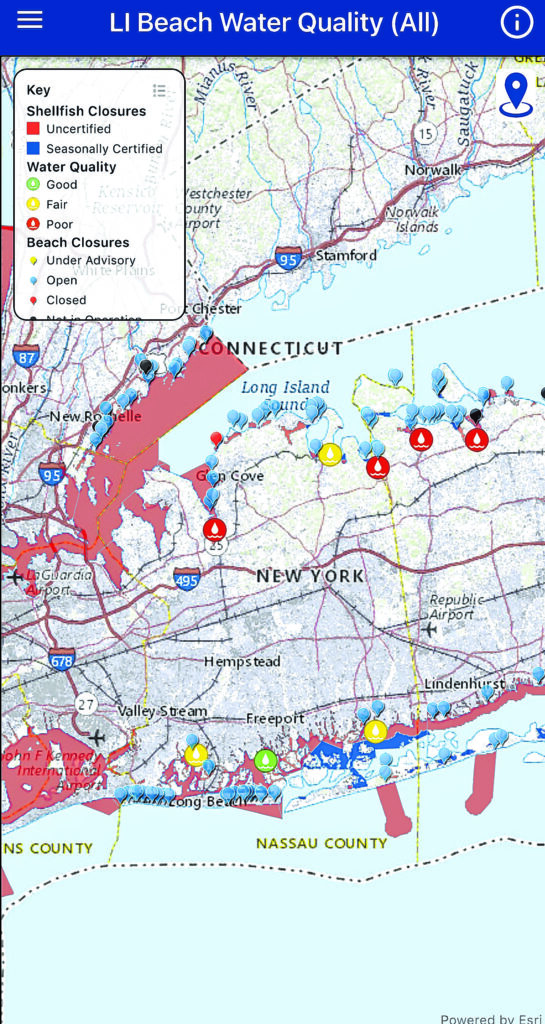 However, there are simple precautions which will alleviate water quality worries. An app called LI Beach Water Quality, developed by Stony Brook University’s School of Marine and Atmospheric Sciences, will aid in this. Gobler said, “They [the public] can download the app “LI Beach Water Quality” which has up to the minute data from NYSDOH [News York State Department of Health] in all beach conditions / closures.”