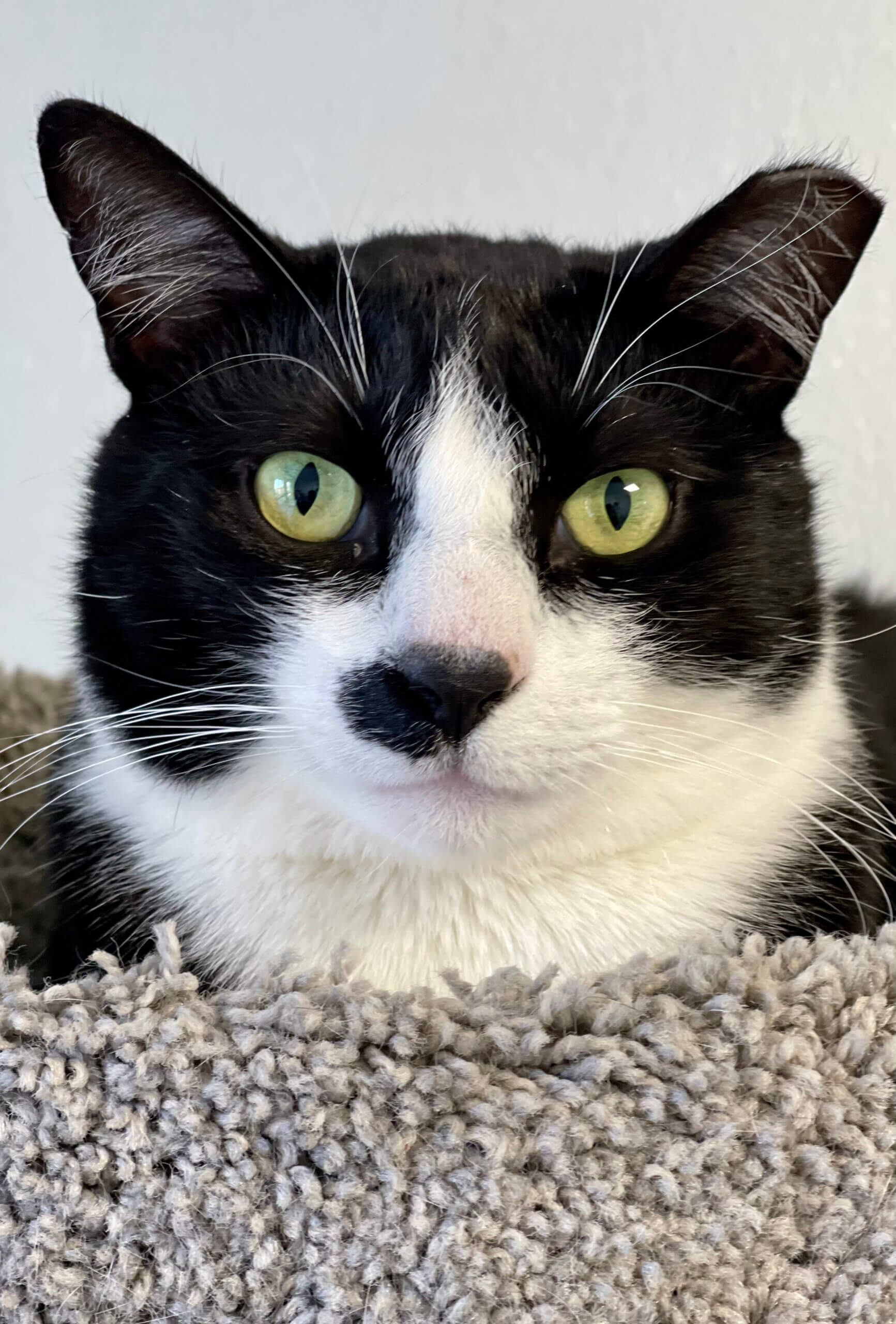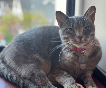 Meet Macy! This girl will make a wonderful best friend to a kind and gentle person! She’s a shiny velvet-gray princess who loves to lounge in a sunny backyard or cuddle up with you on the couch. She’s lived with a family including teenagers and a large dog all of her life, but unfortunately they are moving and can’t take Macy with them. She loves her toys, is very food motivated, is super smart, and easy to train. She loves to cuddle up and even share a pillow with her favorite humans. She’s literally a best friend and guardian angel wrapped up in one!