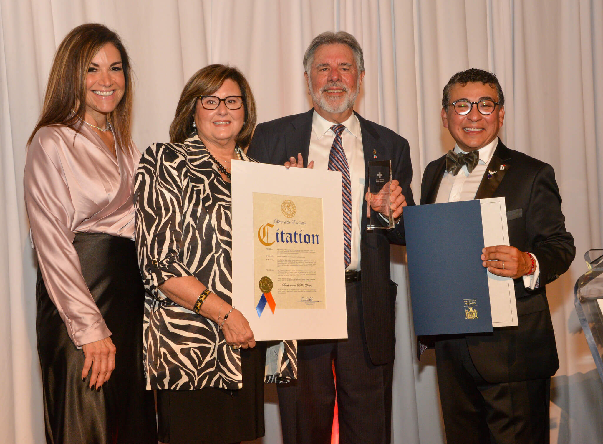 American Red Cross on Long Island raised over $300,000 during its Long Island Heroes Celebration on October 26, 2023, at the Cradle of Aviation. The event was hosted by Elisa DiStefano of NewsdayTV. Jose Dominguez, CEO of the American Red Cross on Long Island helped to present awards to the events’ honorees: Corporate Leadership Honoree: First Quality Enterprises, LLC of Garden City, NY; Humanitarian Honorees: Barbara and Robbie Donno of Manhasset, NY; and Good Samaritan Hero Honoree: Kevin Rivera of Uniondale, NY.