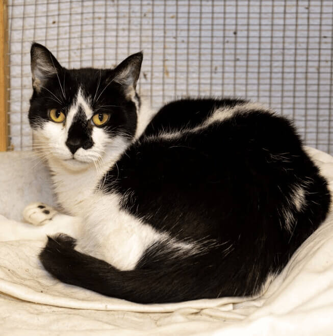 Domino is an absolute big mush. His friendly personality and attention seeking will win you over immediately. Domino was left behind when his owners moved, which seems unbelievable. Who leaves such a good boy to fend for himself? Domino is a very mellow 5-year-old feline who enjoys lounging up on the fosters cat tree and gets along well with the other cats in the home. He is known to talk to you as you enter the room and will rub up against you for petting while purring. Domino will do well in a loving home.